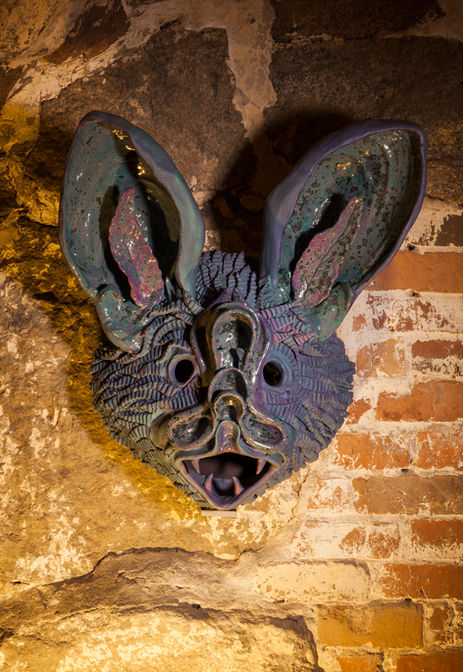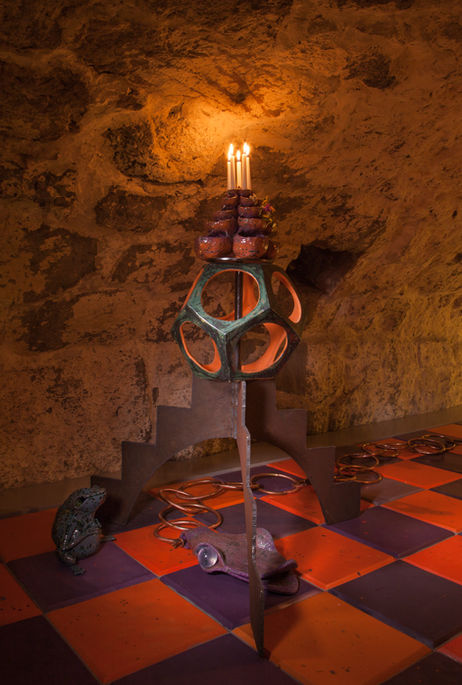 Crystalis transformed an old apple cellar into an immersive grotto of sculpture. Taking as its starting point local and global ancient mythology around the apple, these narratives were complicated by fossil-esque forms alluding to evolutionary remnants or future beings. It takes its title and shares narrative and thematic elements with a 90s computer game which deals with notions of knowledge, belief systems, transformation and human’s impact on the environment. This reimagining of an ancient grotto, followed on from earlier shrine, tarot, labyrinth and grotto works exploring spaces for reflection, initiation and magic.